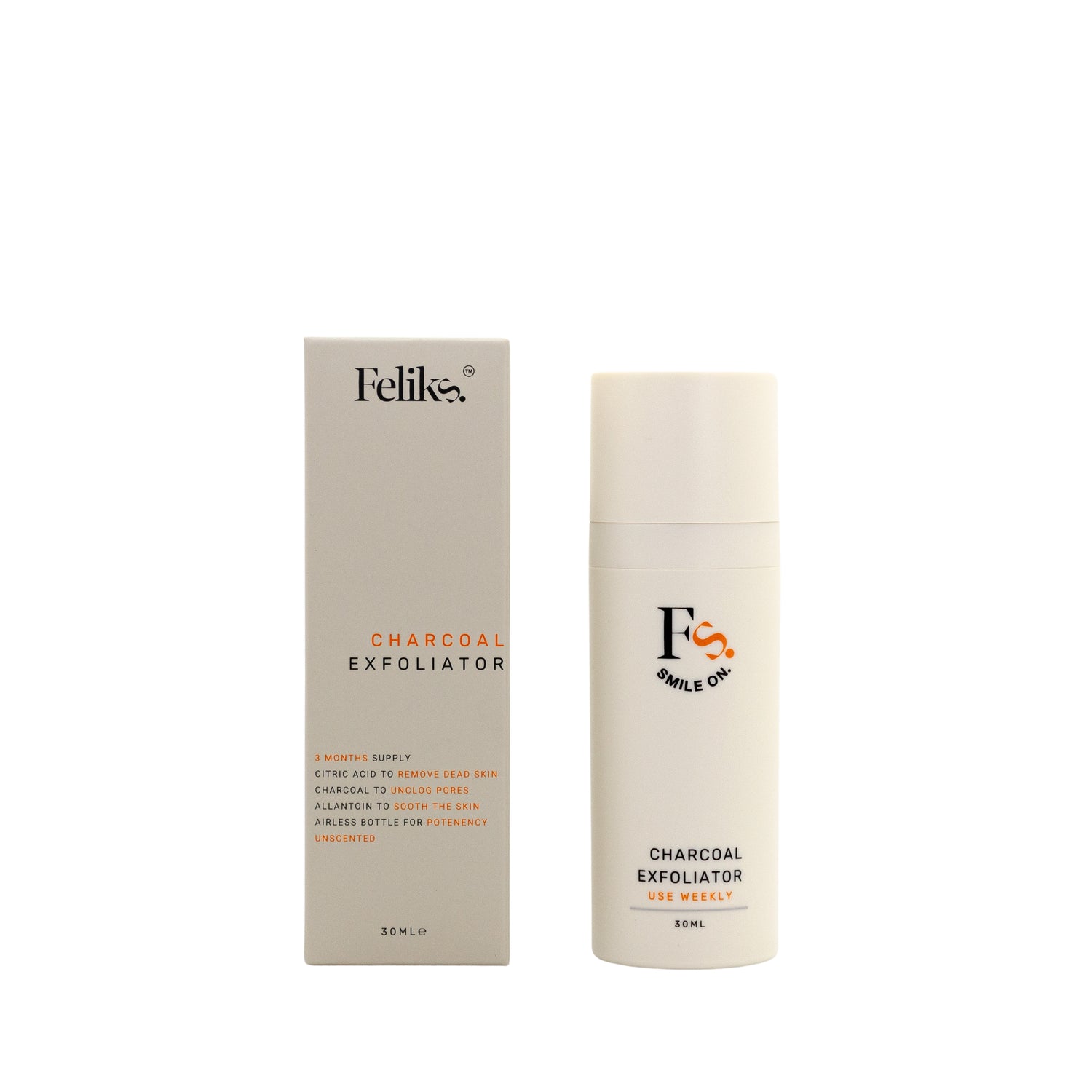 Put 2-3 pumps of Charcoal Exfoliator into the palm of your hand and using your fingertips, apply in a circular motion over your face. The black lumps that form is dead skin.